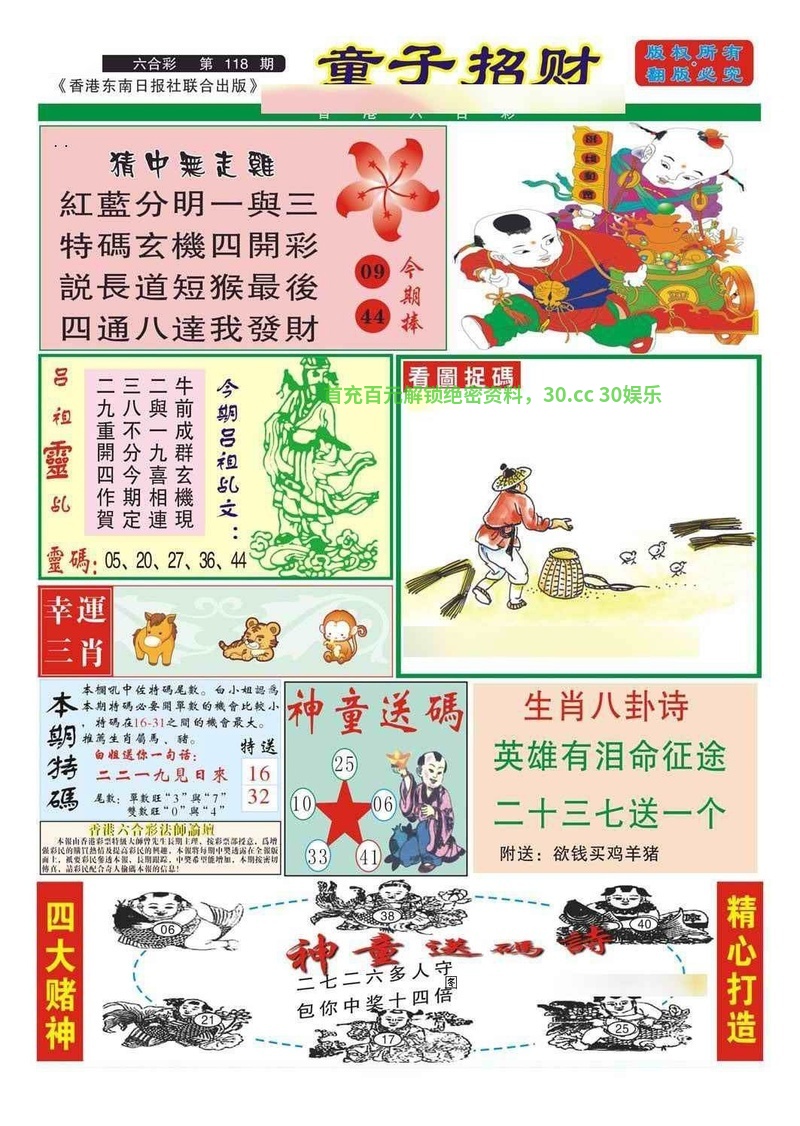 122期:助理玄机诗/简单好下注/台湾玄机诗/港台澳七肖/必中人物