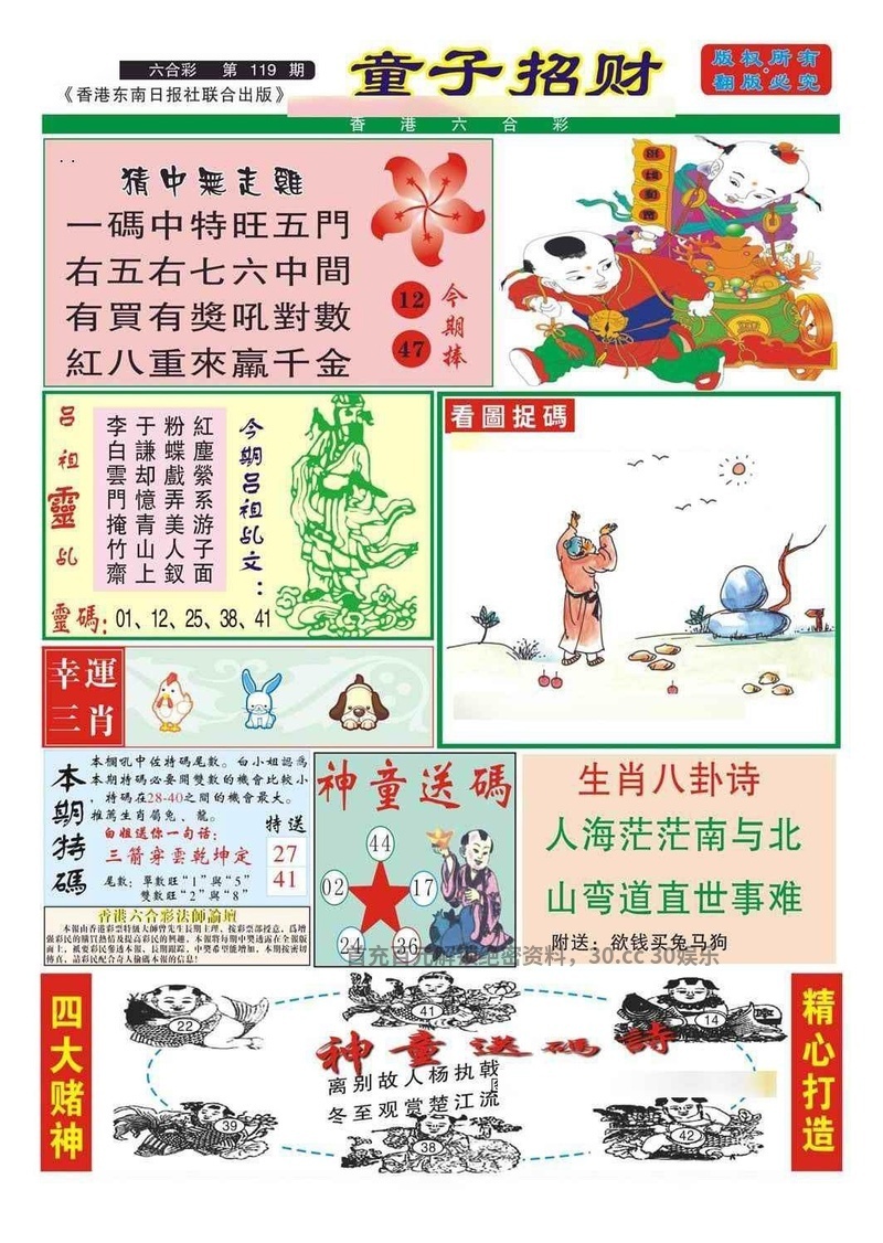 122期:铜罗湾特码爱钱料/港彩仔看码/钟离子禁肖/打油诗/门联诗